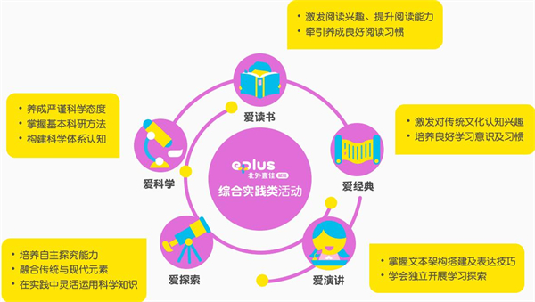 综合实践类活动包含壹佳爱读书、壹佳爱科学、壹佳爱经典、壹佳爱探索、壹佳爱演讲等系列素养类实践项目。各项目严格遵循不同年龄阶段孩子的认知规律,设定培养目标,不仅帮助孩子获取知识和技能,还不断构建认知体系,发展与他人合作的能力、提升创造力。综合实践类活动还包含针对家长的“爱阅大讲堂”、“家有读书娃”等家长咨询服务,有效协助家长做好家庭辅导。